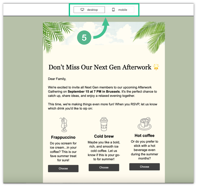 5. Preview your newsletter by clicking on Computer or Mobile to see how it will display before sending.